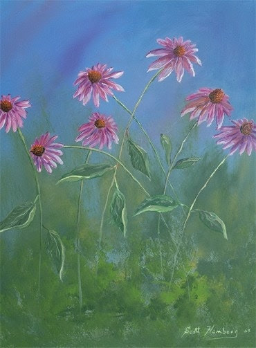 There is such a wide variety of styles, as can be seen just on Etsy. My painting style is “tight” or realistic. I paint how I see. I have artist friends that are always telling me to “loosen up”. I paint in multiple layers – this helps get the depth of color I want to achieve. I think “Coneflowers” is the most “loose” painting I have done.